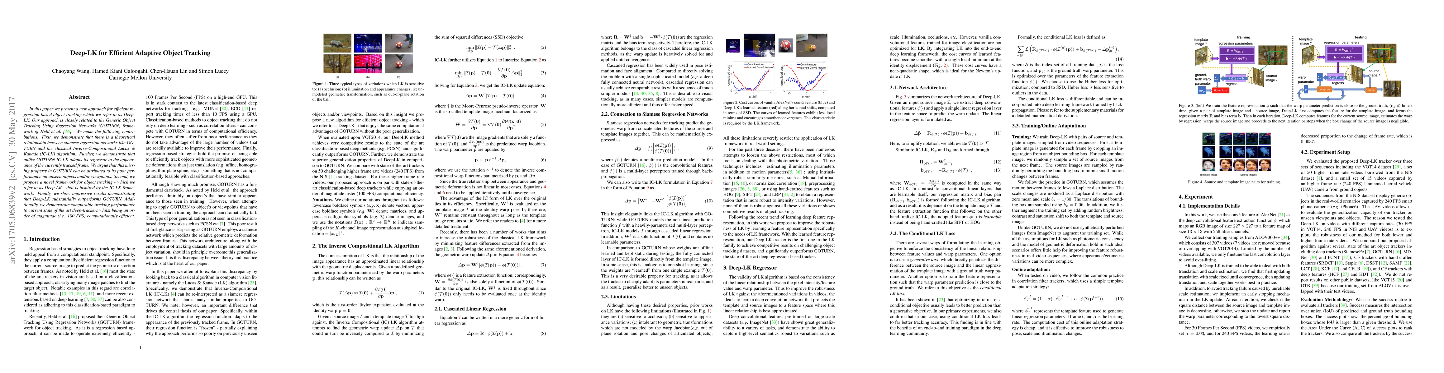 In this paper we present a new approach for efficient regression based object tracking which we refer to as Deep- LK. Our approach is closely related to the Generic Object Tracking Using Regression Networks (GOTURN) framework of Held et al. We make the following contributions. First, we demonstrate that there is a theoretical relationship between siamese regression networks like GOTURN and the classical Inverse-Compositional Lucas & Kanade (IC-LK) algorithm. Further, we demonstrate that unlike GOTURN IC-LK adapts its regressor to the appearance of the currently tracked frame. We argue that this missing property in GOTURN can be attributed to its poor performance on unseen objects and/or viewpoints. Second, we propose a novel framework for object tracking - which we refer to as Deep-LK - that is inspired by the IC-LK framework. Finally, we show impressive results demonstrating that Deep-LK substantially outperforms GOTURN. Additionally, we demonstrate comparable tracking performance to current state of the art deep-trackers whilst being an order of magnitude (i.e. 100 FPS) computationally efficient.