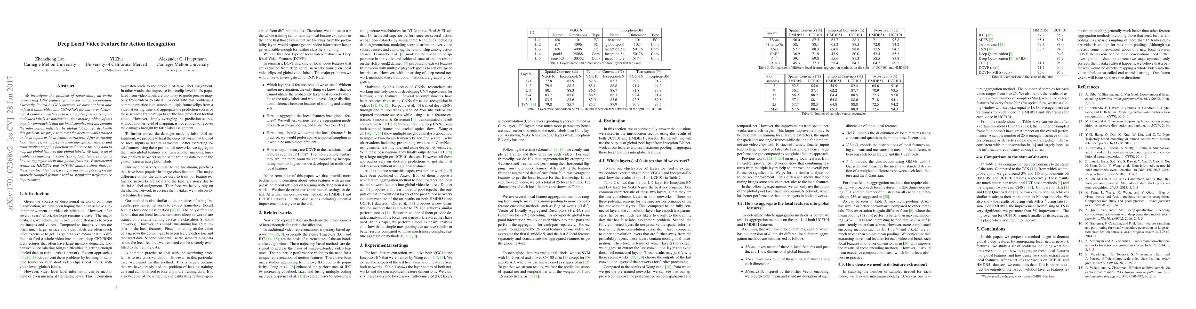 This paper proposes a method for human action recognition using deep local video features extracted by CNNs, addressing the limitation of GPU memory by aggregating local features into global features for improved recognition accuracy. Experimental results demonstrate significant performance gains using maximum pooling on sparsely sampled local features.