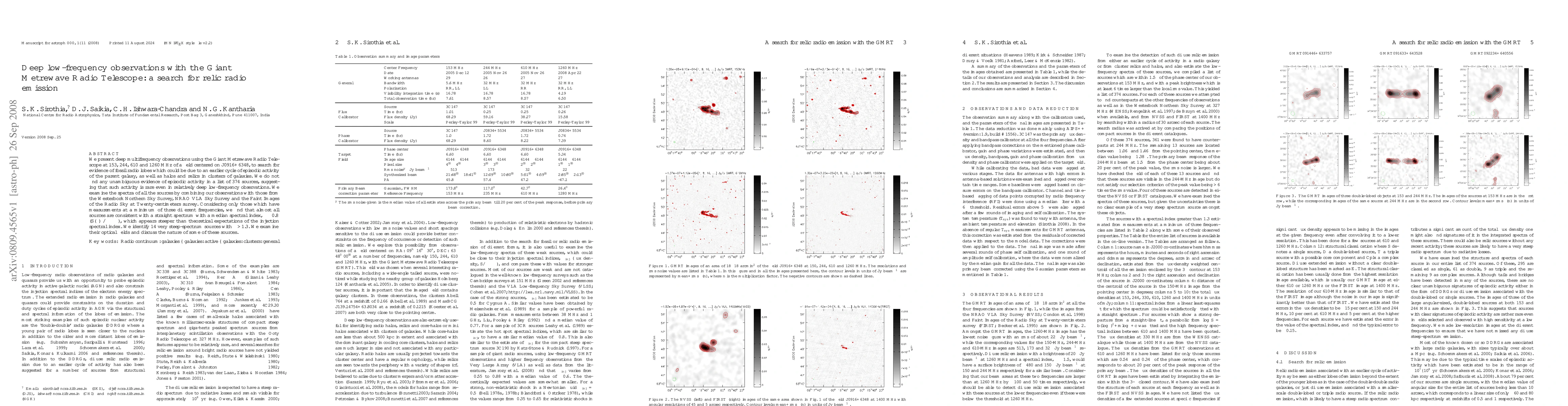 Deep low-frequency observations with the GMRT revealed no clear evidence of past episodic radio activity in 374 sources, suggesting such events are rare. Most sources show a consistent steep spectrum, with a few exhibiting very steep spectra, providing insights into the nature of radio emissions in galaxies and clusters.