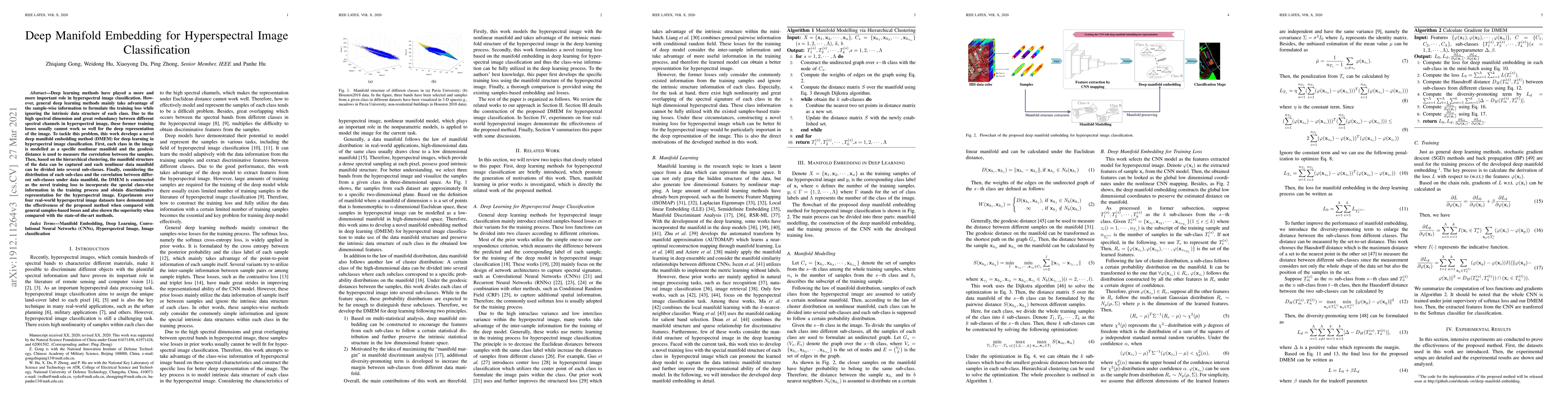 This paper proposes a Deep Manifold Embedding Method (DMEM) for hyperspectral image classification, which models each class as a nonlinear manifold and uses geodesic distances to capture intrinsic data structures. The method effectively preserves the manifold structure and demonstrates improved classification performance on real-world datasets.