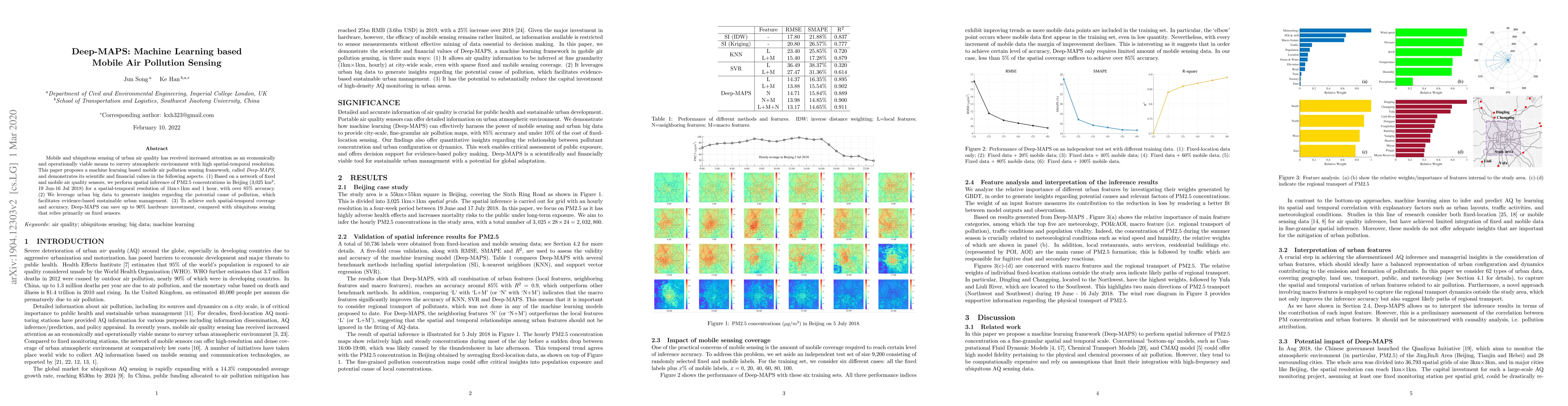 Deep-MAPS is a machine learning framework for mobile air pollution sensing that achieves high spatial-temporal resolution PM2.5 concentration inference in Beijing, offering insights into pollution causes and reducing hardware costs by up to 90% compared to fixed sensor networks.
