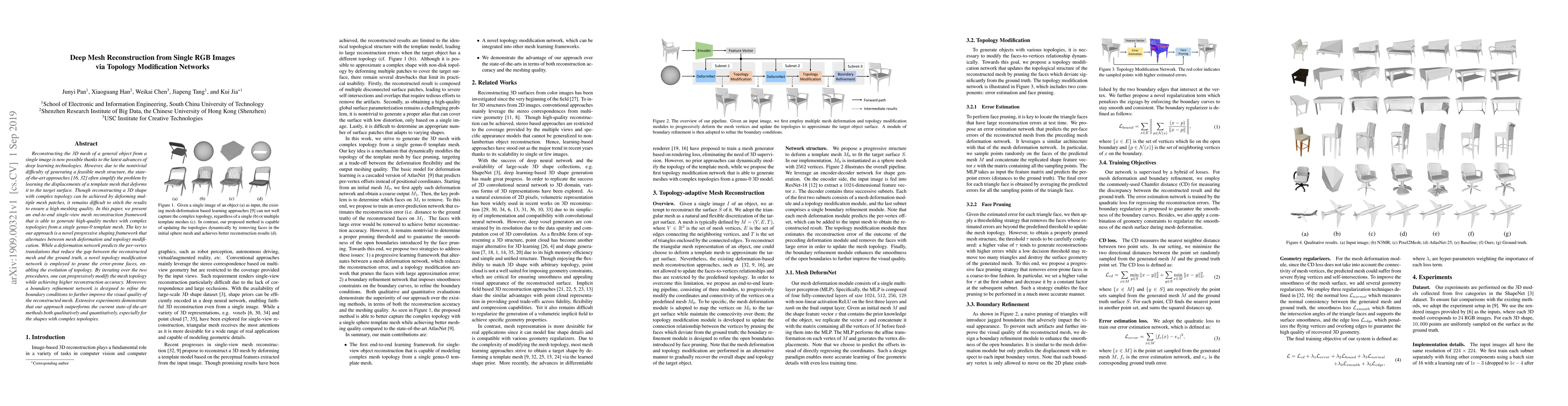This paper introduces an end-to-end framework for reconstructing high-quality 3D meshes with complex topologies from single RGB images, utilizing a progressive shaping approach combining mesh deformation and topology modification networks. The method outperforms existing methods, particularly for complex topological shapes.