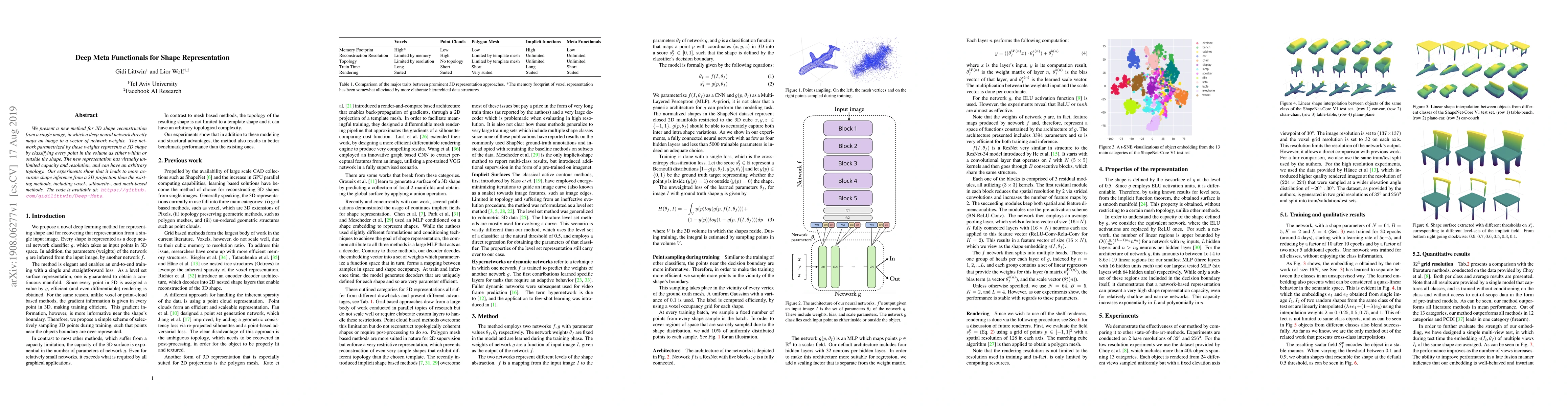 We present a new method for 3D shape reconstruction from a single image, in which a deep neural network directly maps an image to a vector of network weights. The network \textcolor{black}{parametrized by} these weights represents a 3D shape by classifying every point in the volume as either within or outside the shape. The new representation has virtually unlimited capacity and resolution, and can have an arbitrary topology. Our experiments show that it leads to more accurate shape inference from a 2D projection than the existing methods, including voxel-, silhouette-, and mesh-based methods. The code is available at: https://github.com/gidilittwin/Deep-Meta