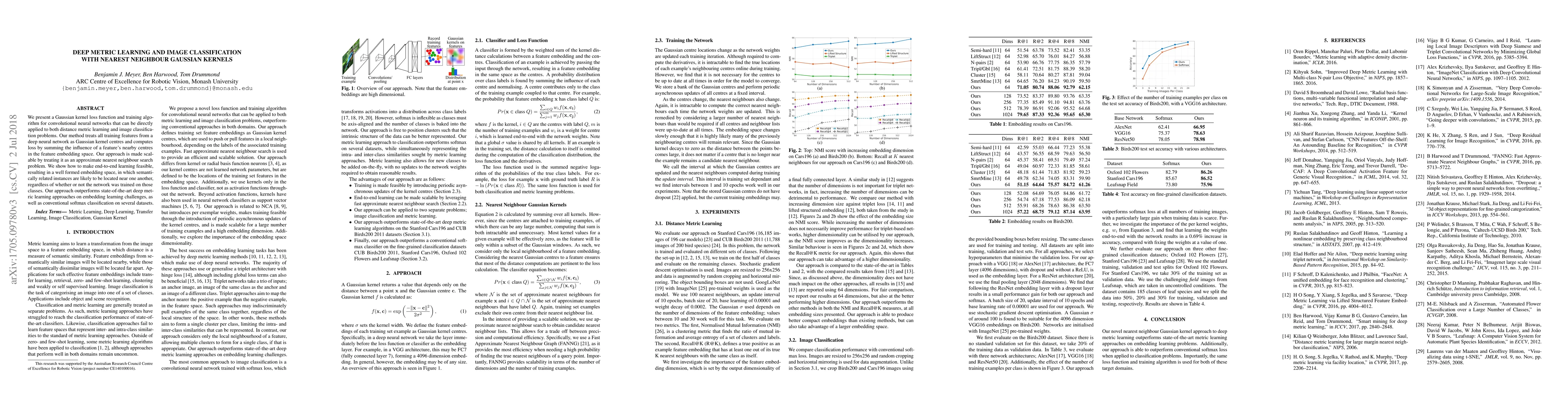 This paper introduces a Gaussian kernel loss function for convolutional neural networks to enhance both deep metric learning and image classification. It leverages an approximate nearest neighbour search to create scalable training, resulting in embeddings where related instances cluster together, outperforming existing methods on various tasks.