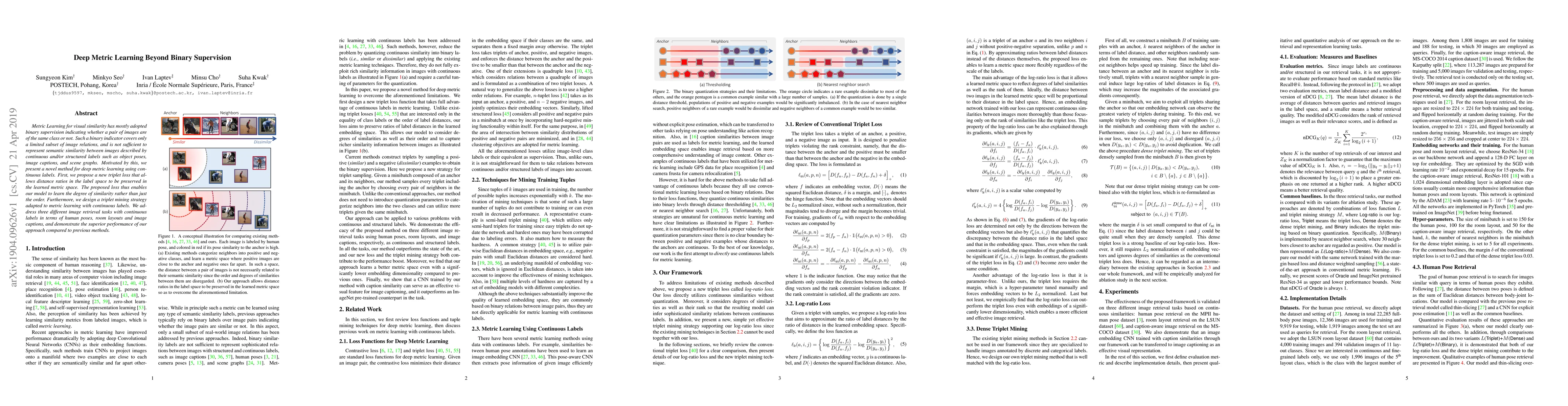 This paper introduces a novel deep metric learning method using continuous labels to better represent semantic similarity in images, beyond binary supervision. It proposes a new triplet loss and a mining strategy to learn the degree of similarity, demonstrating improved performance in tasks involving human poses, room layouts, and image captions.