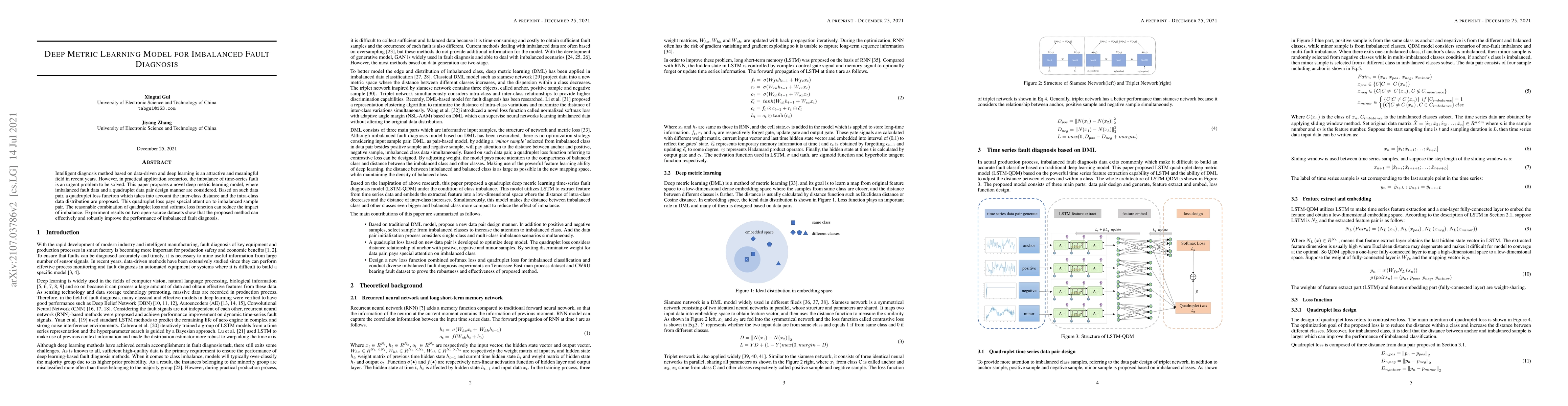 This paper introduces a deep metric learning model to address the issue of imbalanced fault diagnosis in time-series data, utilizing a quadruplet loss function that emphasizes inter-class distance and intra-class data distribution, especially for imbalanced sample pairs. Experimental results on two datasets demonstrate significant improvements in fault diagnosis performance.