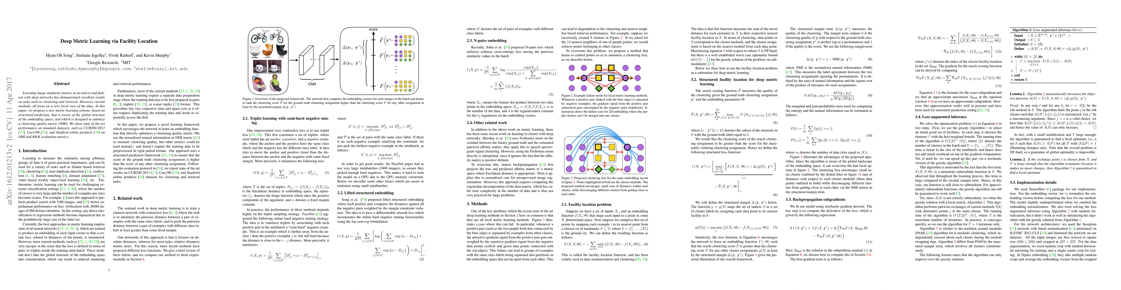 Learning the representation and the similarity metric in an end-to-end fashion with deep networks have demonstrated outstanding results for clustering and retrieval. However, these recent approaches still suffer from the performance degradation stemming from the local metric training procedure which is unaware of the global structure of the embedding space. We propose a global metric learning scheme for optimizing the deep metric embedding with the learnable clustering function and the clustering metric (NMI) in a novel structured prediction framework. Our experiments on CUB200-2011, Cars196, and Stanford online products datasets show state of the art performance both on the clustering and retrieval tasks measured in the NMI and Recall@K evaluation metrics.