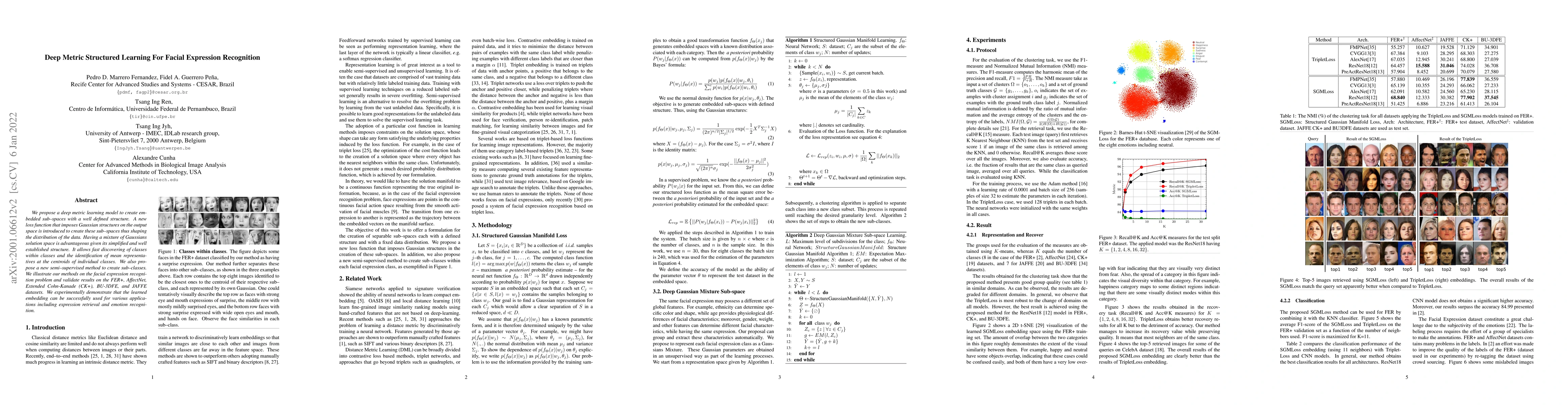 This paper proposes a deep metric learning model that creates well-defined sub-spaces for facial expression recognition using a new loss function that imposes Gaussian structures on the output space. The learned embeddings can be used for various applications including expression retrieval and emotion recognition.