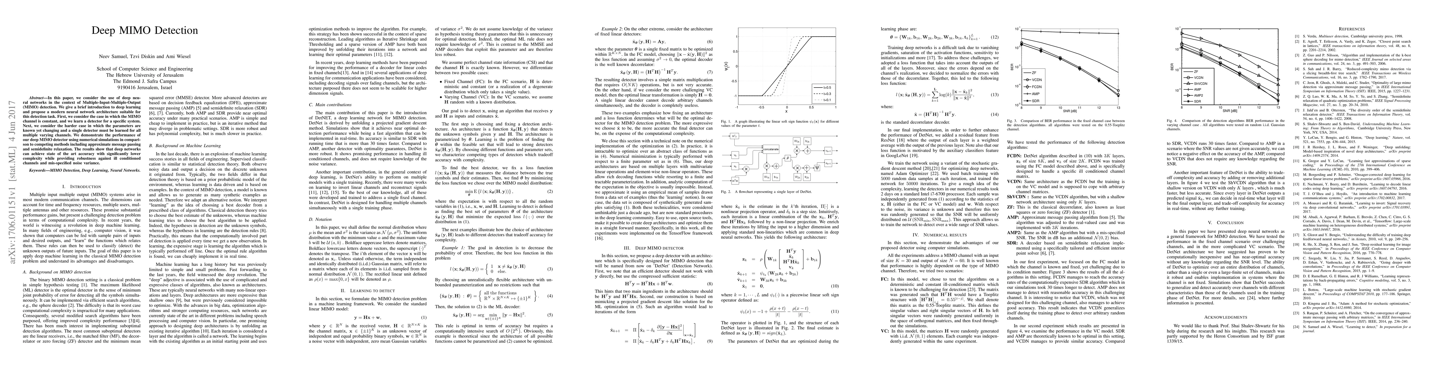 This paper explores the application of deep neural networks for Multiple-Input-Multiple-Output (MIMO) detection, proposing a novel architecture that outperforms traditional methods like approximate message passing and semidefinite relaxation. The deep MIMO detector demonstrates state-of-the-art accuracy with lower complexity and robustness against ill-conditioned channels and mis-specified noise variance.