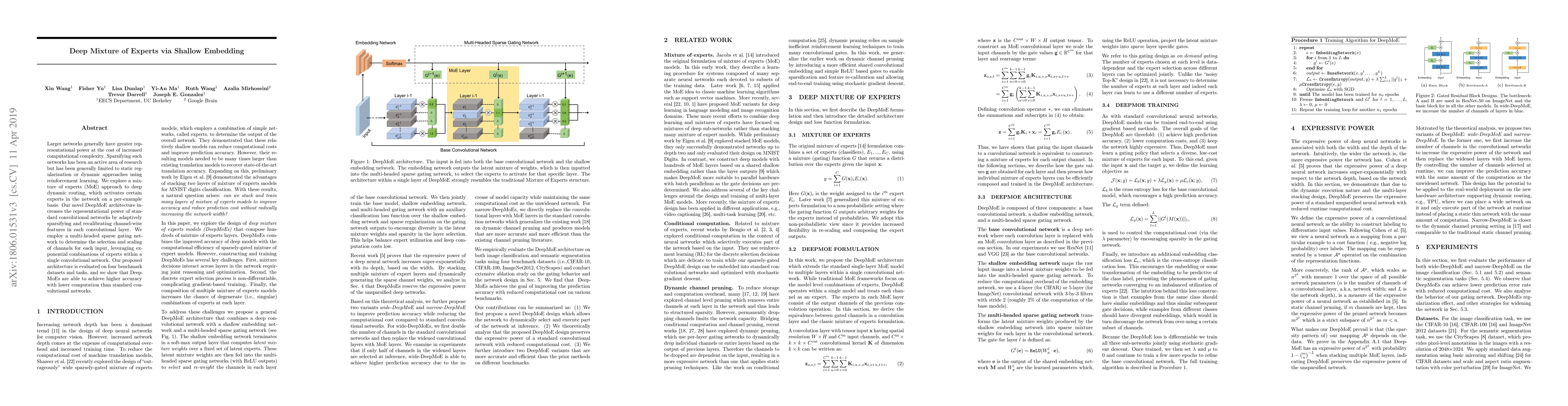A new deep learning architecture called DeepMoE achieves higher accuracy than standard convolutional networks while reducing computational complexity through adaptive feature sparsification.