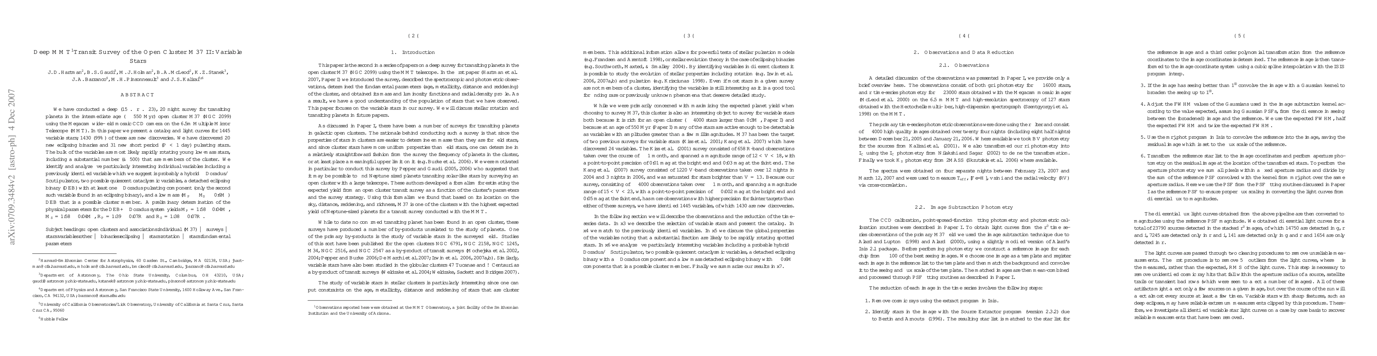 We have conducted a deep ($15 \la r \la 23$), 20 night survey for transiting planets in the intermediate age ($\sim 550 {\rm Myr}$) open cluster M37 (NGC 2099) using the Megacam wide-field mosaic CCD camera on the 6.5m Multiple Mirror Telescope (MMT). In this paper we present a catalog and light curves for 1445 variable stars; 1430 (99%) of these are new discoveries. We have discovered 20 new eclipsing binaries and 31 new short period ($P < 1 {\rm day}$) pulsating stars. The bulk of the variables are most likely rapidly rotating young low-mass stars, including a substantial number ($\ga 500$) that are members of the cluster. We identify and analyze five particularly interesting individual variables including a previously identified variable which we suggest is probably a hybrid $\gamma$ Doradus/$\delta$ Scuti pulsator, two possible quiescent cataclysmic variables, a detached eclipsing binary (DEB) with at least one $\gamma$ Doradus pulsating component (only the second such variable found in an eclipsing binary), and a low mass ($M_{P} \sim M_{S} \sim 0.6 M_{\odot}$) DEB that is a possible cluster member. A preliminary determination of the physical parameters for the DEB+$\gamma$ Doradus system yields $M_{P} = 1.58 \pm 0.04 M_{\odot}$, $M_{S} = 1.58 \pm 0.04 M_{\odot}$, $R_{P} = 1.39 \pm 0.07 R_{\odot}$ and $R_{S} = 1.38 \pm 0.07 R_{\odot}$.