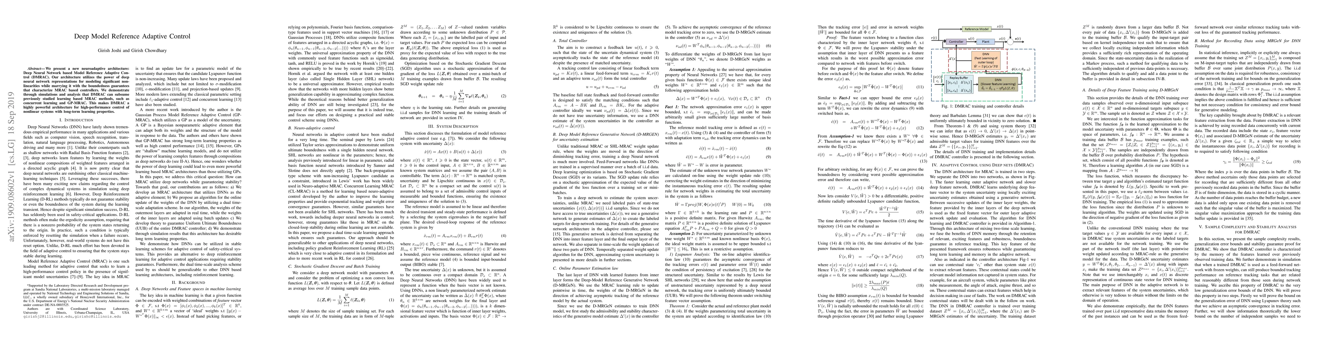 A new neuroadaptive control architecture, DMRAC, combines deep neural networks with model reference adaptive control to achieve powerful learning properties for nonlinear systems, outperforming existing methods.