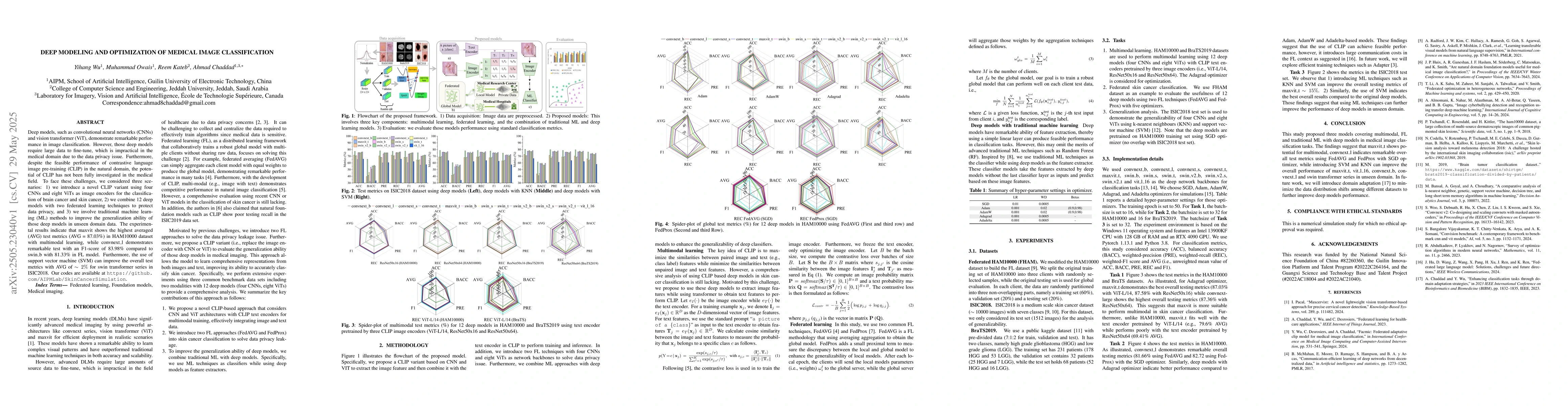 A new study improves medical image classification using deep models like CNNs and ViTs with novel pre-training methods and federated learning techniques to protect data privacy, achieving high accuracy in brain cancer and skin cancer detection.