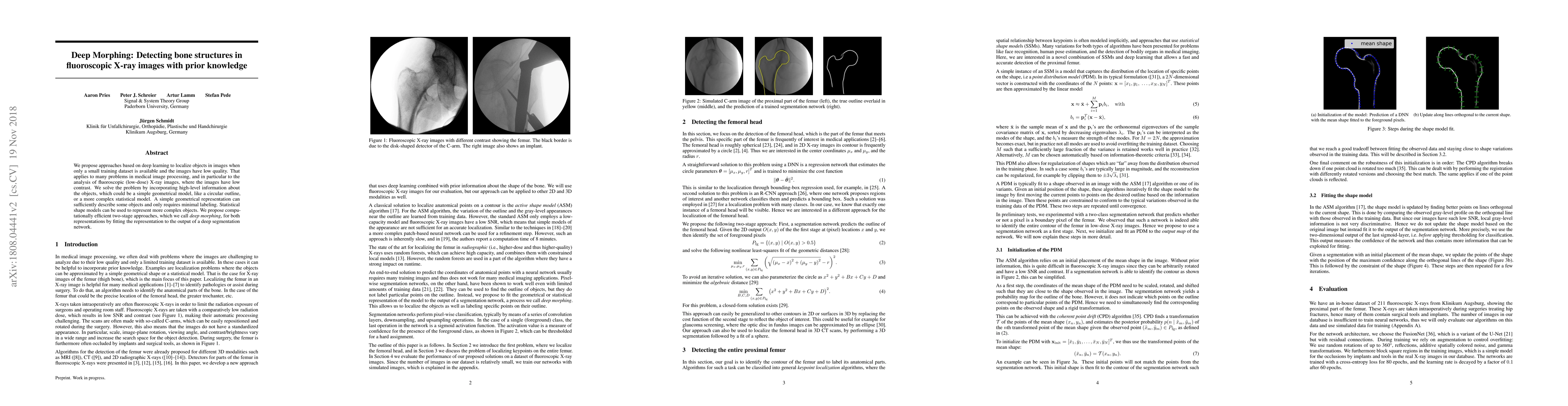 This paper proposes a deep learning approach called 'Deep Morphing' to detect bone structures in low-quality fluoroscopic X-ray images with limited training data, using simple geometrical models or statistical shape representations.