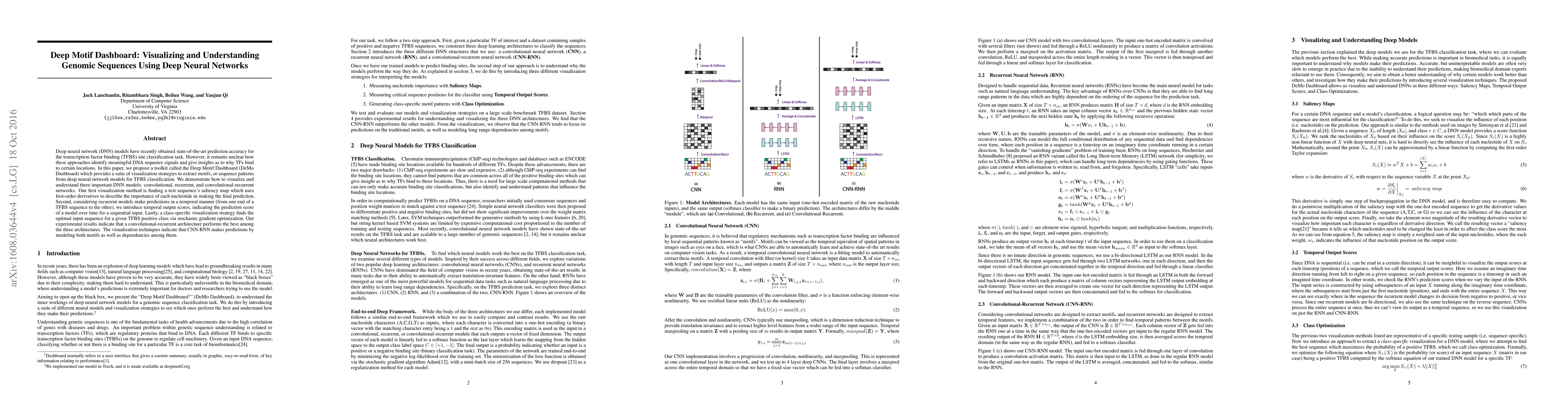 A new toolkit called DeMo Dashboard helps visualize and understand how deep neural networks identify meaningful DNA sequence signals for transcription factor binding sites. It reveals that a convolutional-recurrent architecture models both motifs and dependencies among them.