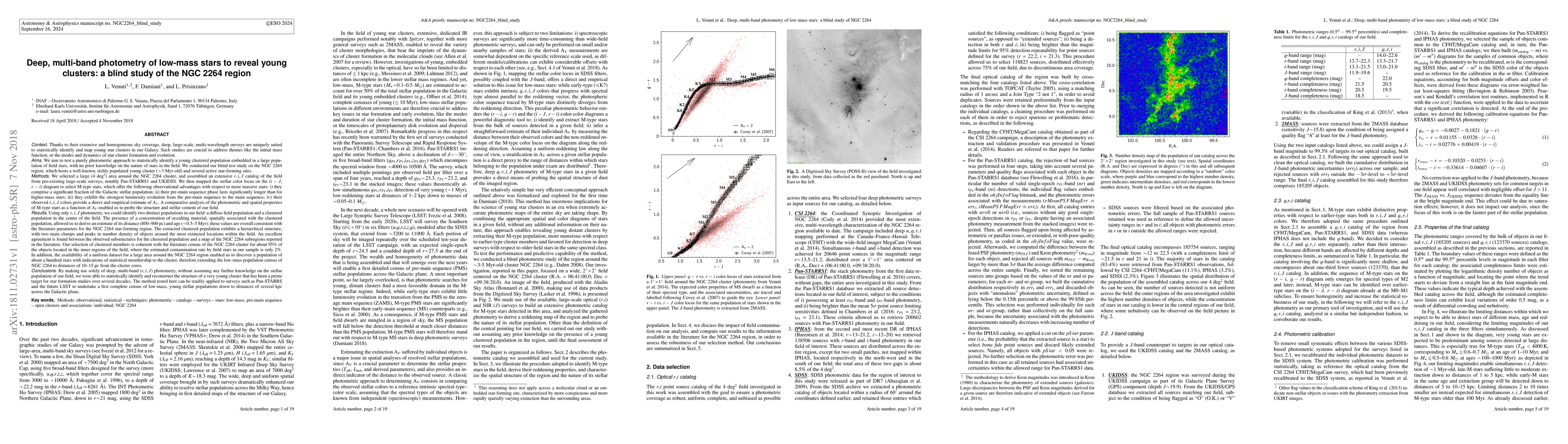 This paper presents a photometric approach to identify young clusters among field stars without prior knowledge, focusing on the NGC 2264 region. The study reveals two distinct populations: a diffuse field and a clustered population, with the latter showing a hierarchical structure and characteristics consistent with the NGC 2264 cluster.