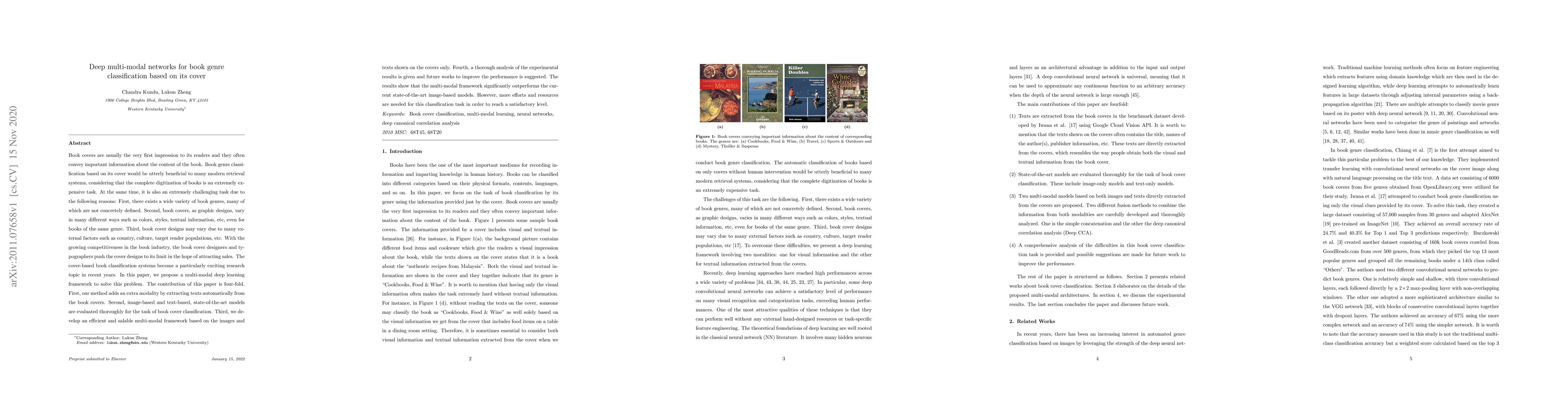 This paper proposes a multi-modal deep learning framework for book genre classification based on cover images and automatically extracted texts. The framework significantly outperforms current image-based models, but further improvements are needed to reach satisfactory performance levels.