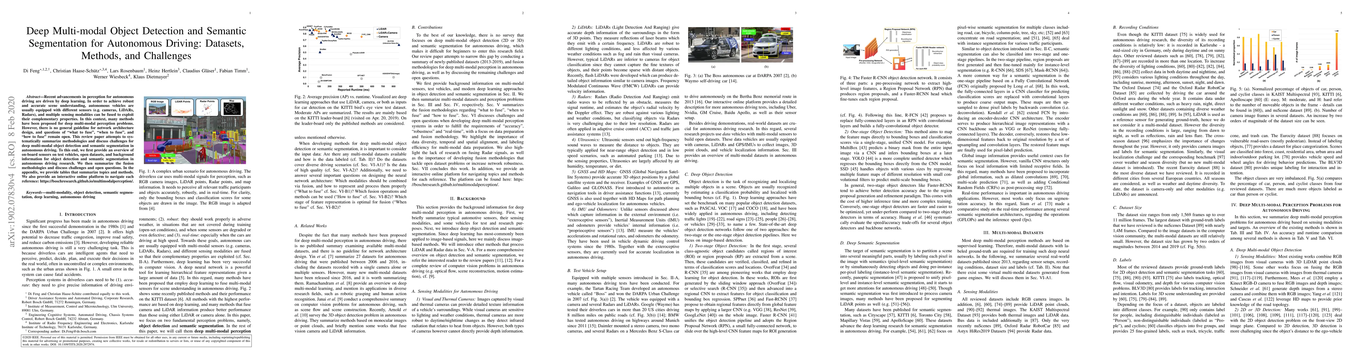 This paper reviews deep multi-modal perception methods for autonomous driving, focusing on object detection and semantic segmentation. It provides an overview of sensor types, datasets, and fusion methodologies, while also discussing challenges and open questions in network architecture design.