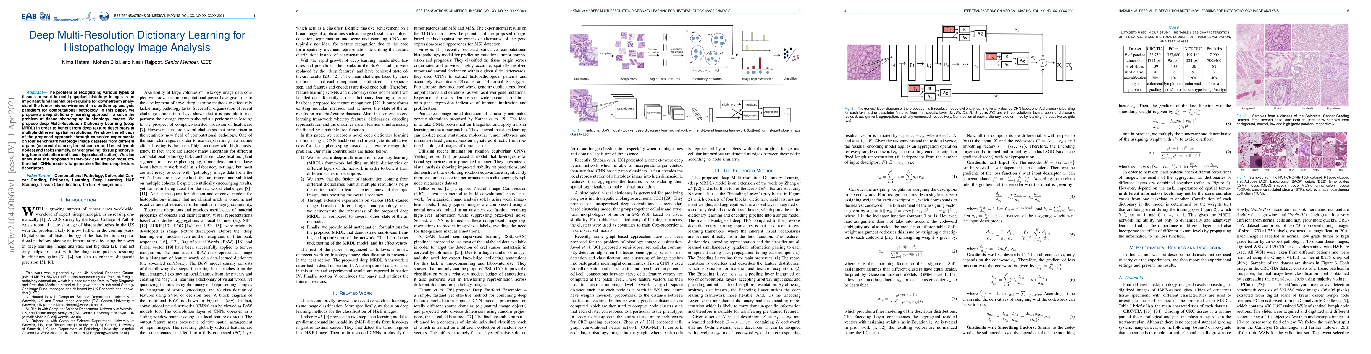 This paper proposes deep Multi-Resolution Dictionary Learning (deepMRDL) for tissue phenotyping in multi-gigapixel histology images, leveraging deep texture descriptors at various resolutions. The efficacy of deepMRDL is demonstrated through experiments on four histology datasets, showing its utility for cancer grading, tissue phenotyping, tumor detection, and tissue type classification.