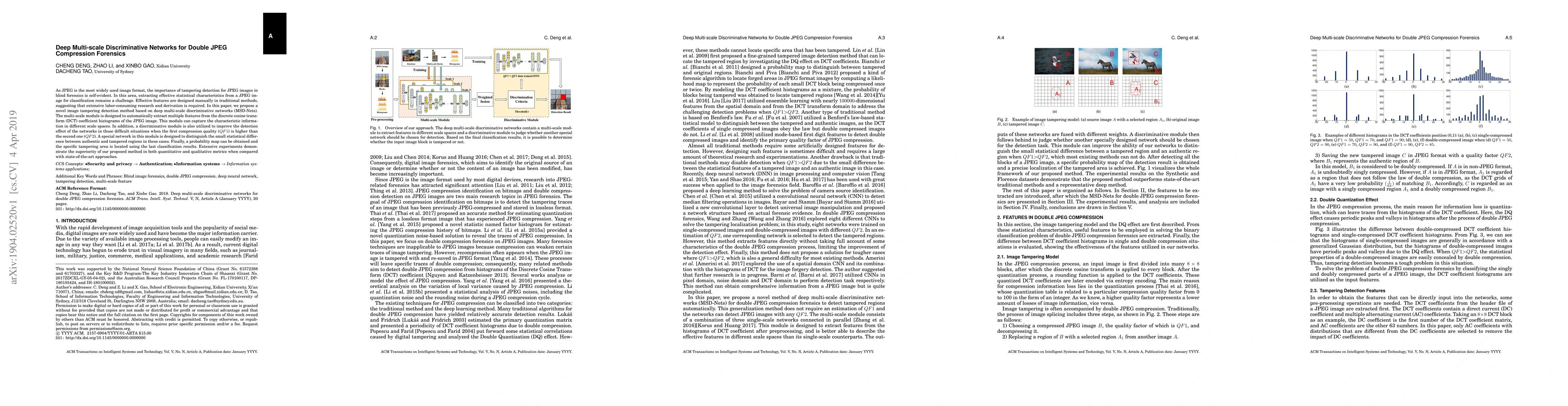 This paper proposes a deep multi-scale discriminative network (MSD-Nets) for detecting double JPEG compression artifacts, automatically extracting features from DCT coefficient histograms to identify tampering. The method outperforms existing techniques in both quantitative and qualitative assessments.