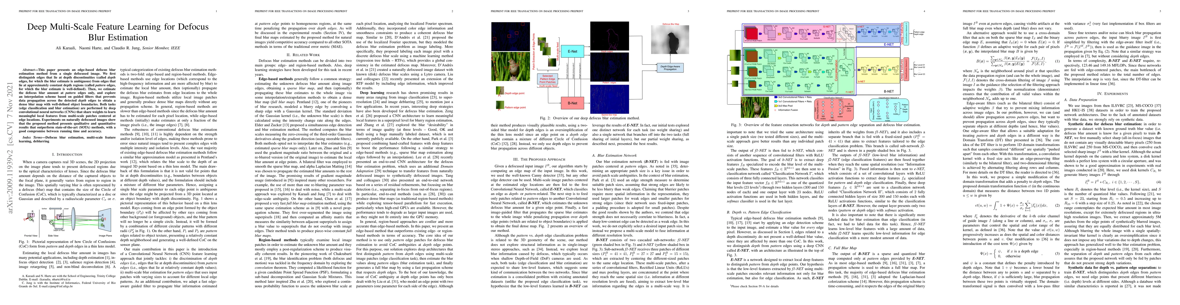 This paper proposes a deep learning method for estimating defocus blur from a single image, distinguishing between depth and pattern edges to accurately estimate blur at pattern edges, and using guided filters to create a dense blur map. The method outperforms existing techniques in both qualitative and quantitative assessments.