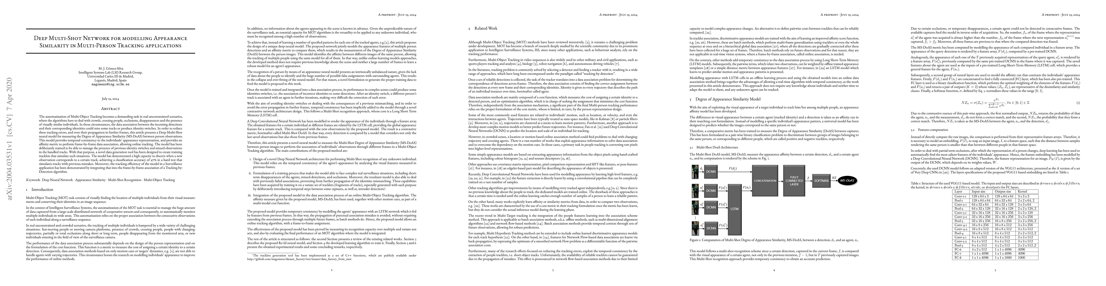 This paper introduces a Deep Multi-Shot neural network to measure appearance similarity for multi-person tracking, addressing challenges like occlusions and visually similar individuals. The model achieves 97% classification accuracy in complex scenarios, demonstrating effective online tracking and integration into a Surveillance Tracking-by-Detection algorithm.