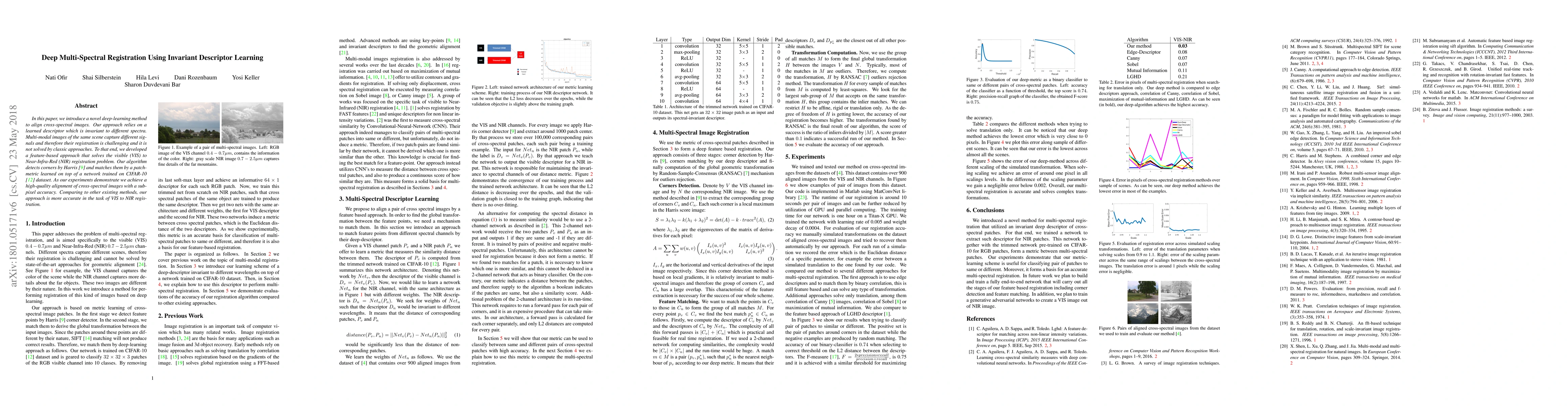 This paper presents a deep-learning method for aligning cross-spectral images using an invariant descriptor learned from CIFAR-10. The proposed feature-based approach achieves high-quality, sub-pixel accuracy registration for visible to Near-Infra-Red images, outperforming existing methods.