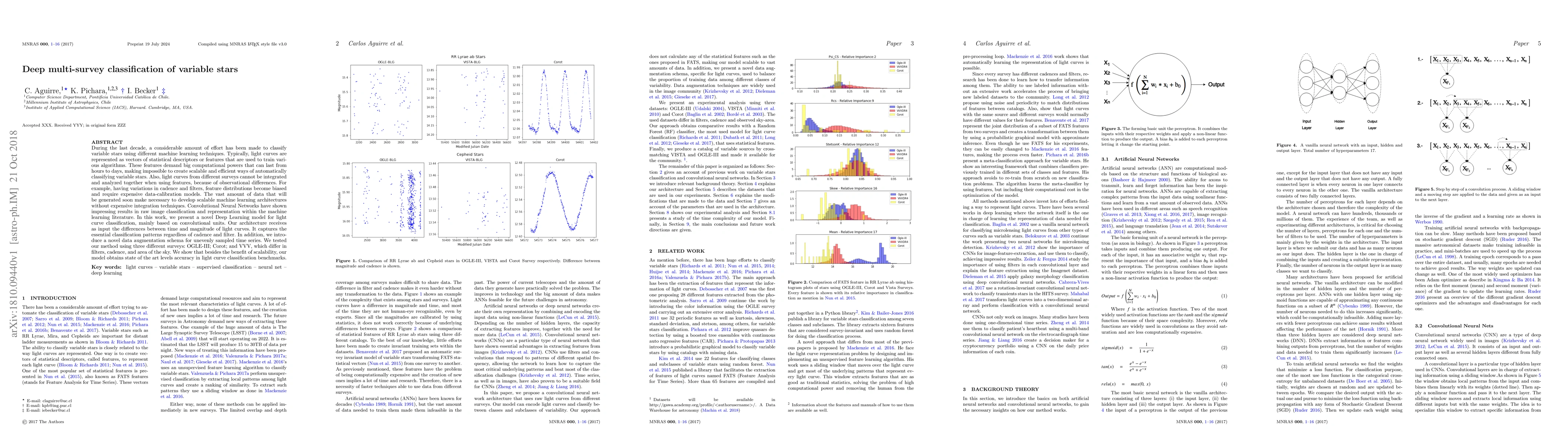During the last decade, a considerable amount of effort has been made to classify variable stars using different machine learning techniques. Typically, light curves are represented as vectors of statistical descriptors or features that are used to train various algorithms. These features demand big computational powers that can last from hours to days, making impossible to create scalable and efficient ways of automatically classifying variable stars. Also, light curves from different surveys cannot be integrated and analyzed together when using features, because of observational differences. For example, having variations in cadence and filters, feature distributions become biased and require expensive data-calibration models. The vast amount of data that will be generated soon make necessary to develop scalable machine learning architectures without expensive integration techniques. Convolutional Neural Networks have shown impressing results in raw image classification and representation within the machine learning literature. In this work, we present a novel Deep Learning model for light curve classification, mainly based on convolutional units. Our architecture receives as input the differences between time and magnitude of light curves. It captures the essential classification patterns regardless of cadence and filter. In addition, we introduce a novel data augmentation schema for unevenly sampled time series. We test our method using three different surveys: OGLE-III; Corot; and VVV, which differ in filters, cadence, and area of the sky. We show that besides the benefit of scalability, our model obtains state of the art levels accuracy in light curve classification benchmarks.