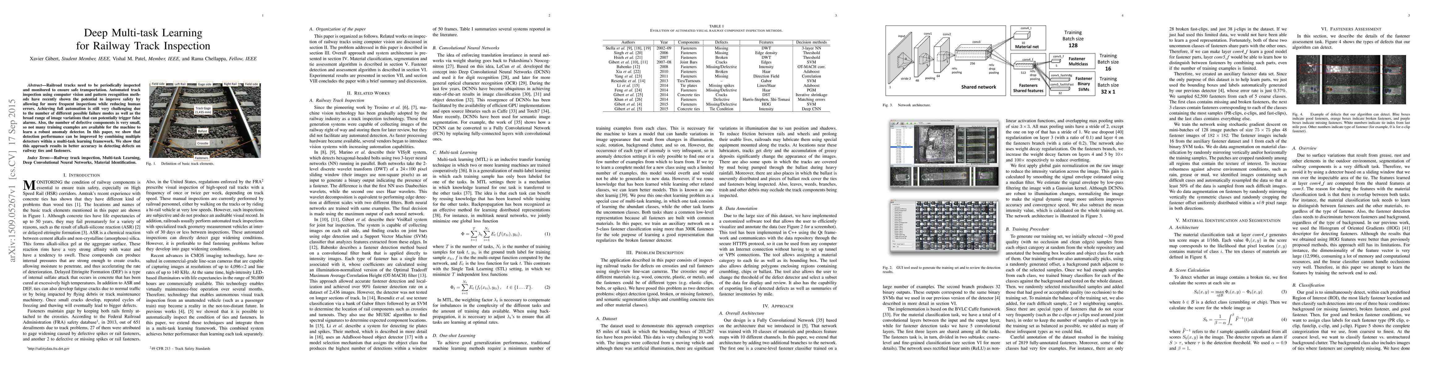 This paper explores deep multi-task learning to enhance automated railway track inspection, addressing the challenges of diverse failure modes and limited training data. The proposed method combines multiple detectors to improve defect detection accuracy on railway ties and fasteners.