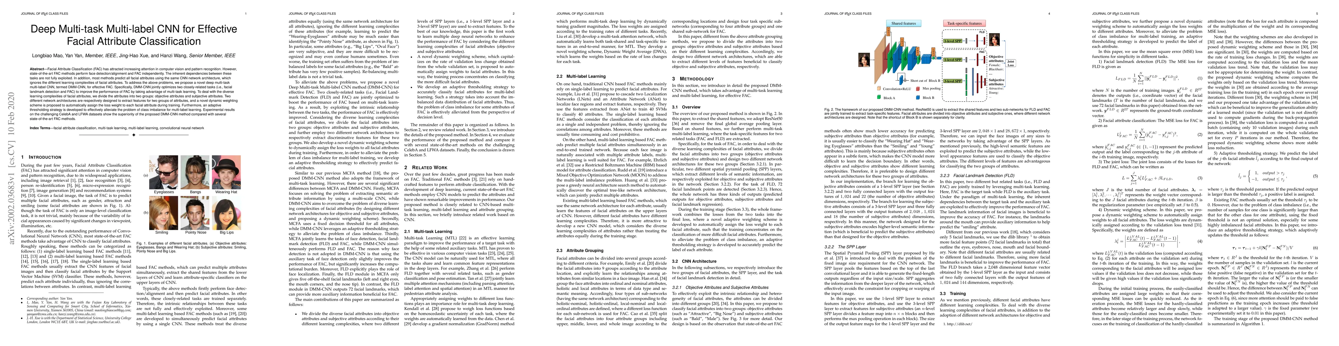 The paper proposes a novel deep multi-task multi-label CNN (DMM-CNN) for effective Facial Attribute Classification (FAC), which jointly optimizes facial landmark detection and FAC to exploit task dependencies and uses different network architectures for diverse attribute complexities. Experimental results show DMM-CNN outperforms existing methods on CelebA and LFWA datasets.