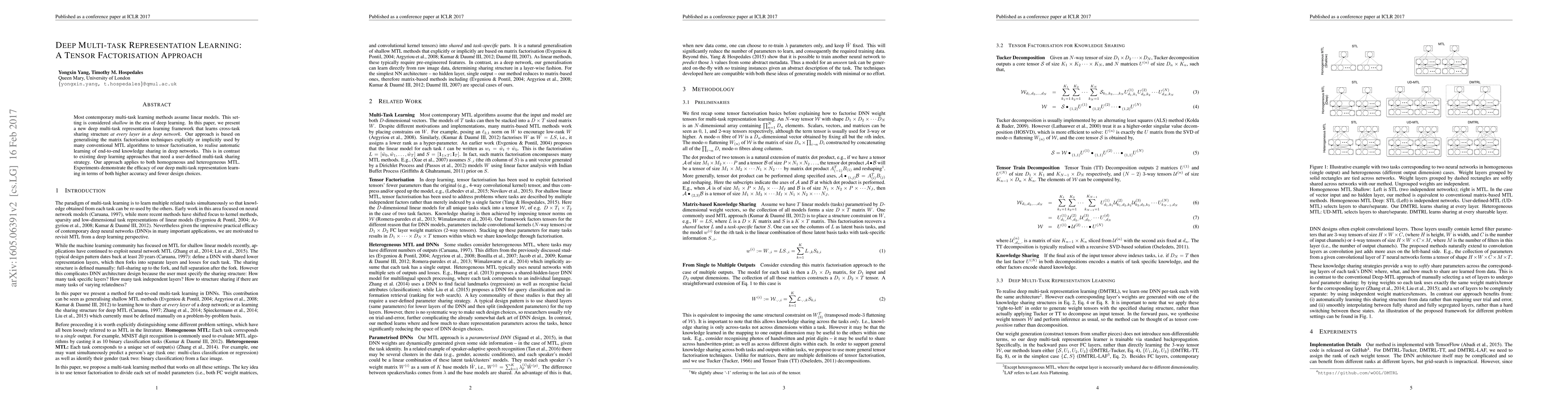 This paper introduces a deep multi-task learning framework based on tensor factorisation, enabling automatic end-to-end knowledge sharing across tasks in deep networks, contrasting with linear models and user-defined strategies. Experimental results show improved accuracy and reduced design choices.