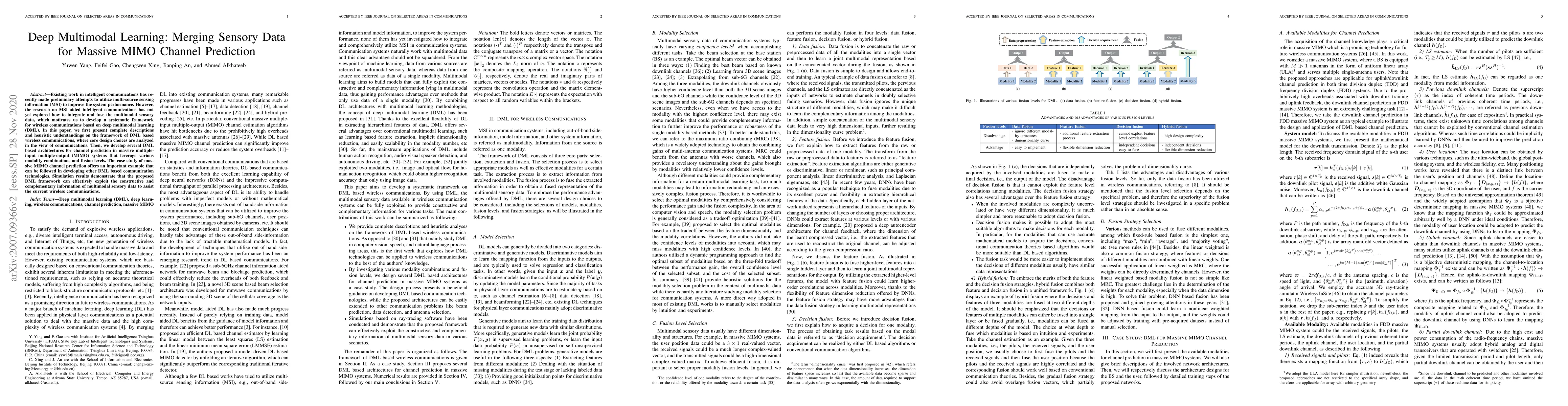 This paper proposes a deep multimodal learning (DML) framework for wireless communications, specifically for massive MIMO channel prediction. It develops DML architectures that integrate various sensory data modalities to enhance system performance, demonstrating improved channel prediction through simulations.