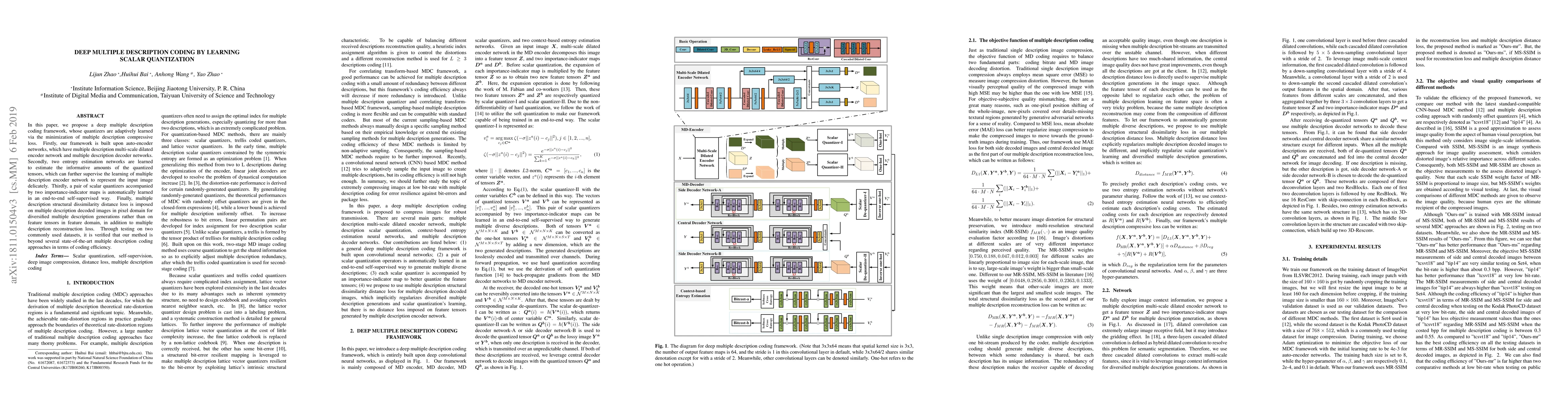 This paper proposes a deep multiple description coding framework using adaptively learned scalar quantizers and auto-encoder networks to minimize a compressive loss, achieving superior coding efficiency compared to state-of-the-art methods. The framework employs entropy estimation networks and self-supervised learning to generate diverse multiple descriptions.