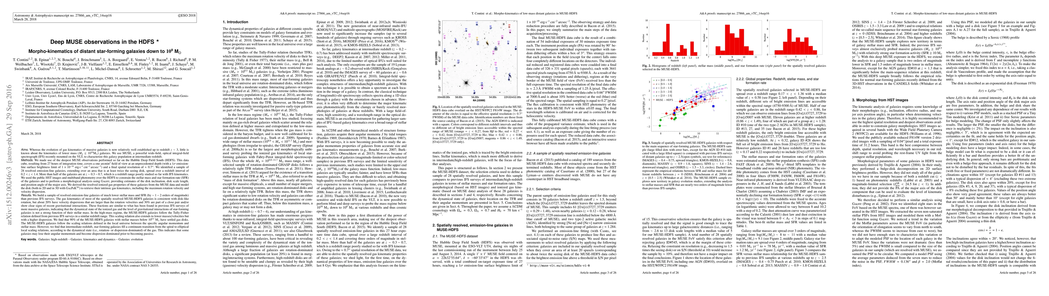 (Abridged) We make use of the deepest VLT/MUSE observations performed so far on the Hubble Deep Field South (HDFS) to characterize the low-mass (< $10^{10}$M$_\odot$) galaxy population at intermediate redshift. We identify a sample of 28 spatially-resolved emission-line galaxies in the deep (27h integration time) MUSE data cube, spread over a redshift interval of 0.2 < z < 1.4. The public HST images and multi-band photometry over the HDFS are used to constrain the stellar mass and star formation rate (SFR) of the galaxies and to perform a morphological analysis. We derive the resolved ionized gas properties of these galaxies from the MUSE data and model the disk (both in 2D and with GalPaK$^{\rm 3D}$) to retrieve their intrinsic gas kinematics. We build a sample of resolved emission-line galaxies of much lower stellar mass and SFR (by $\sim$1-2 orders of magnitude) than previous 3D spectroscopic surveys. Most of the spatially-resolved MUSE-HDFS galaxies have gas kinematics consistent with disk-like rotation, but about 20% have velocity dispersions larger than the rotation velocities, and 30% are part of a close pair and/or show clear signs of recent gravitational interactions. In the high-mass regime, the MUSE-HDFS galaxies follow the Tully-Fisher relation defined from previous surveys in a similar redshift range. This scaling relation extends also to lower masses/velocities but with a higher dispersion. The MUSE-HDFS galaxies follow the scaling relations defined in the local universe between the specific angular momentum and the stellar mass. However, we find that intermediate-redshift star-forming galaxies fill a continuum transition from the spiral to elliptical local scaling relations, according to the dynamical state of the gas. This indicates that some galaxies may lose their angular momentum and become dispersion-dominated prior to becoming passive.