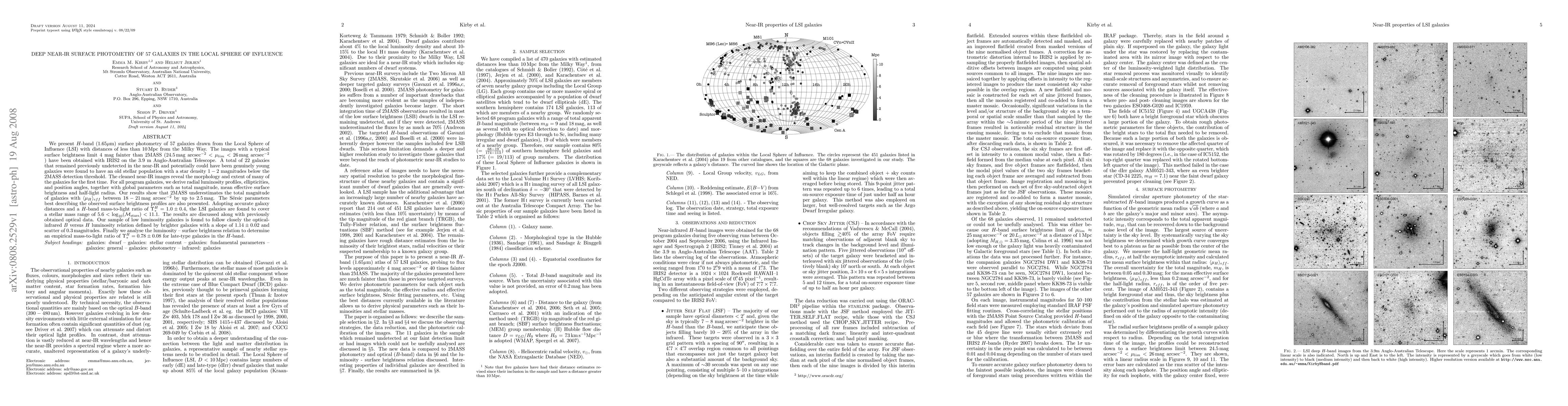 This study presents H-band surface photometry of 57 galaxies within 10 Mpc of the Milky Way, revealing previously undetected galaxies and their old stellar populations. The analysis shows that 2MASS underestimates galaxy magnitudes and provides new insights into galaxy morphology, luminosity profiles, and mass-to-light ratios.