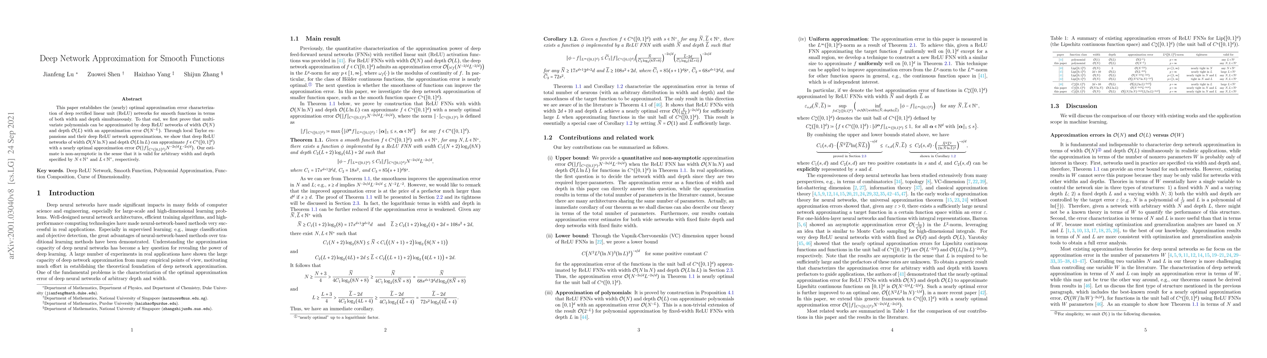 This paper establishes the (nearly) optimal approximation error characterization of deep rectified linear unit (ReLU) networks for smooth functions in terms of both width and depth simultaneously. To that end, we first prove that multivariate polynomials can be approximated by deep ReLU networks of width $\mathcal{O}(N)$ and depth $\mathcal{O}(L)$ with an approximation error $\mathcal{O}(N^{-L})$. Through local Taylor expansions and their deep ReLU network approximations, we show that deep ReLU networks of width $\mathcal{O}(N\ln N)$ and depth $\mathcal{O}(L\ln L)$ can approximate $f\in C^s([0,1]^d)$ with a nearly optimal approximation error $\mathcal{O}(\|f\|_{C^s([0,1]^d)}N^{-2s/d}L^{-2s/d})$. Our estimate is non-asymptotic in the sense that it is valid for arbitrary width and depth specified by $N\in\mathbb{N}^+$ and $L\in\mathbb{N}^+$, respectively.