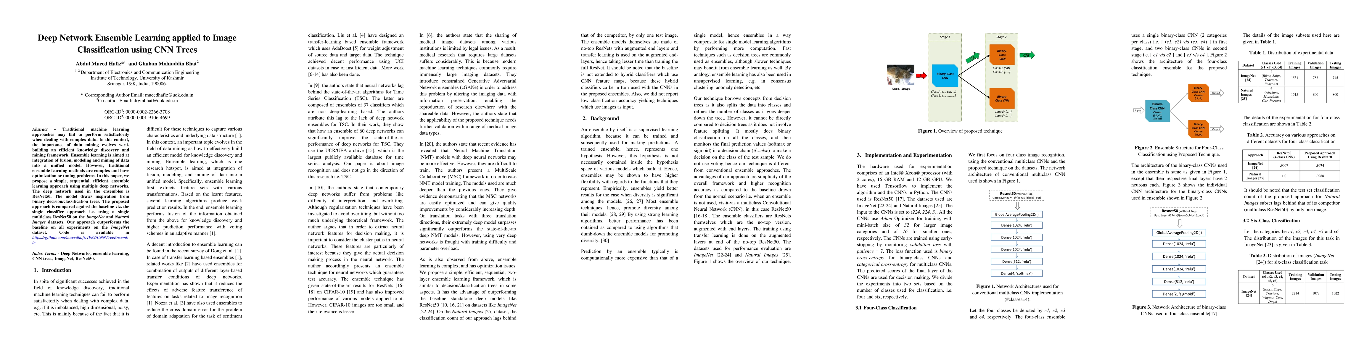 This paper proposes an efficient ensemble learning approach using multiple ResNet50 deep networks inspired by binary decision trees for image classification. The method outperforms a single ResNet50 model on ImageNet and Natural Images datasets, demonstrating improved performance through ensemble learning.