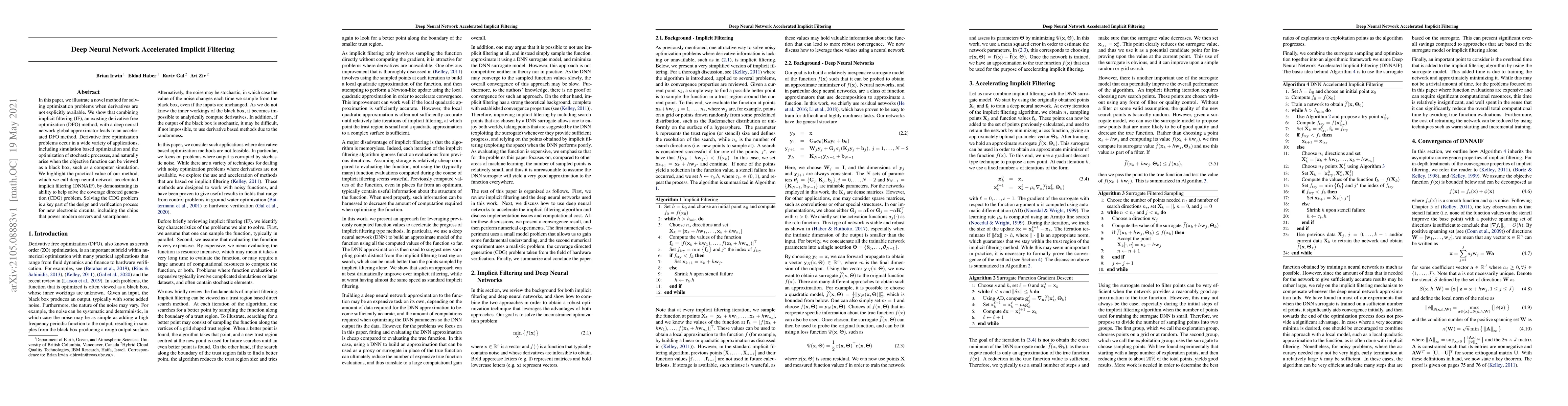 This paper introduces Deep Neural Network Accelerated Implicit Filtering (DNNAIF), a novel method that combines implicit filtering (IF), a derivative-free optimization method, with a deep neural network global approximator to accelerate DFO methods.