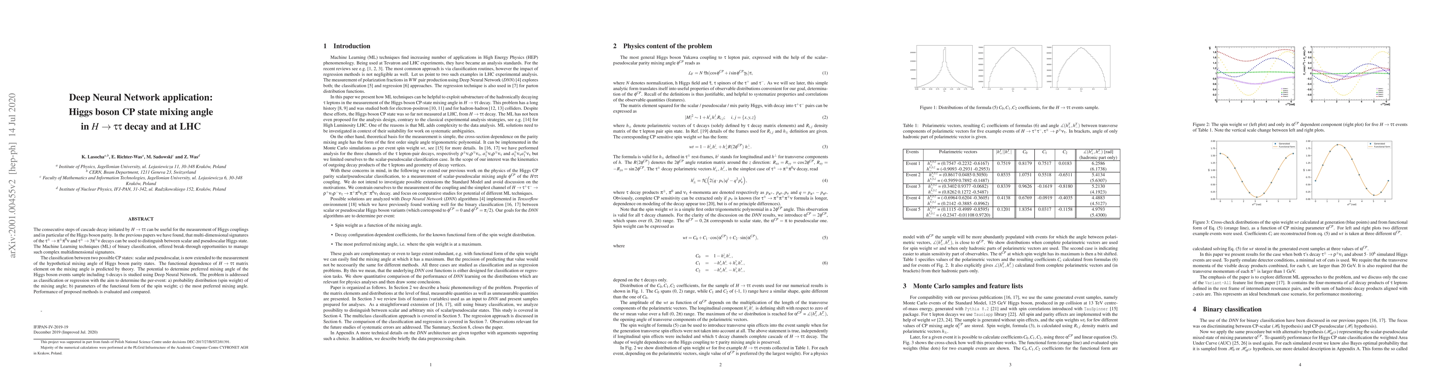 Researchers used a deep neural network to predict the mixing angle of Higgs boson parity states in H to tau tau decays at LHC, improving our understanding of the Higgs boson's properties.