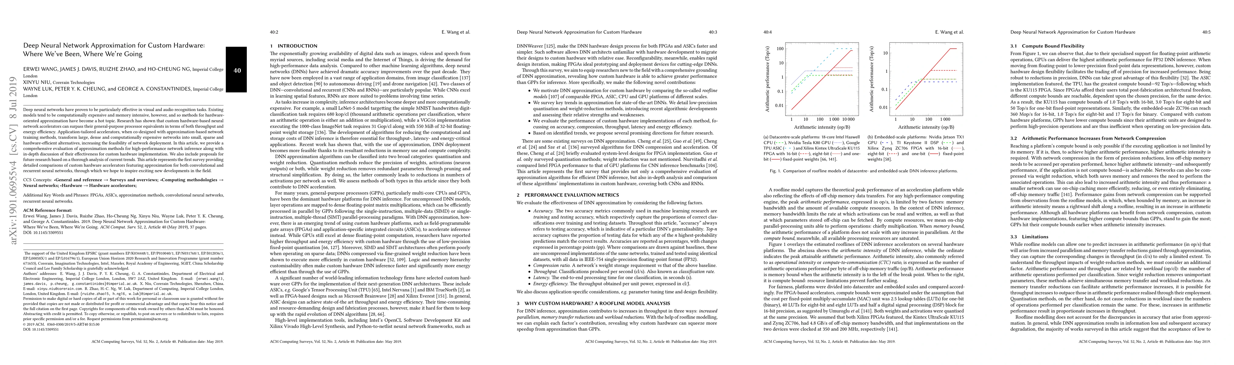 This article surveys approximation methods for deep neural networks tailored for custom hardware, highlighting their effectiveness in improving throughput and energy efficiency. It also proposes future research directions based on current trends in custom hardware accelerators for convolutional and recurrent neural networks.