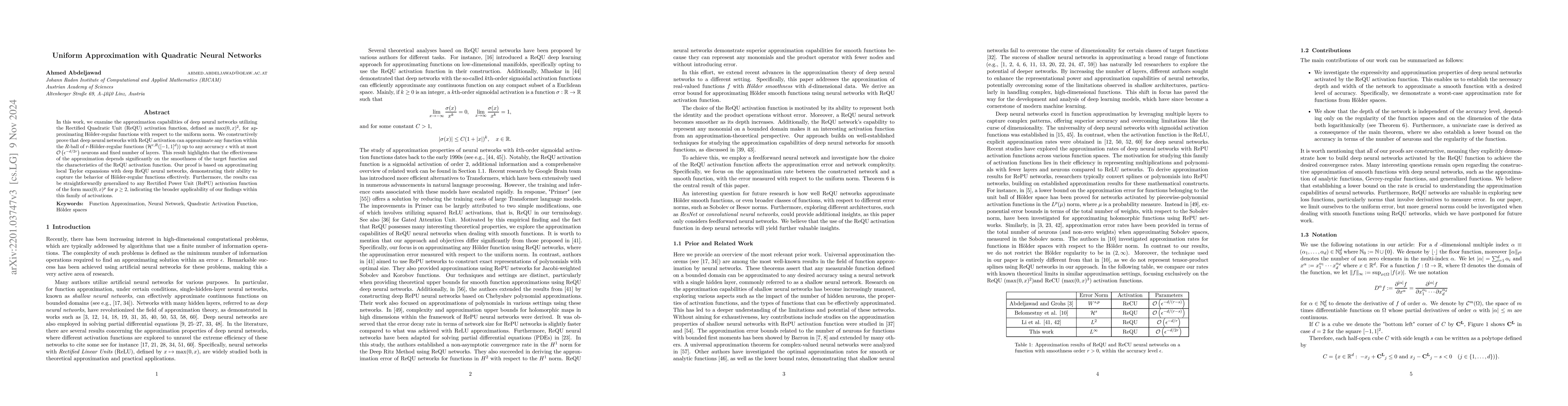 Summary: This research investigates how deep Rectified Quadratic Unit neural networks approximate H\"older-regular functions, finding that the choice of activation function significantly influences the network's theoretical approximation capabilities under the uniform norm.