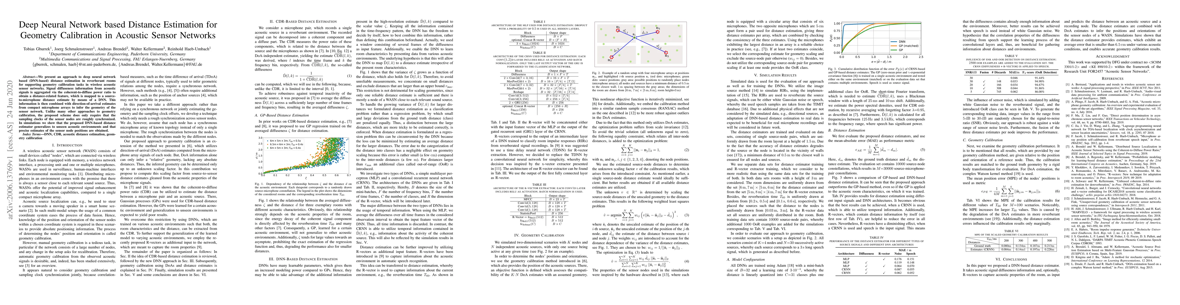 This paper proposes a deep neural network (DNN) based method for estimating distances in acoustic sensor networks, using signal diffuseness information to infer source-to-microphone distances. The approach requires only roughly synchronized sampling clocks and demonstrates precise geometry calibration in reverberant environments.
