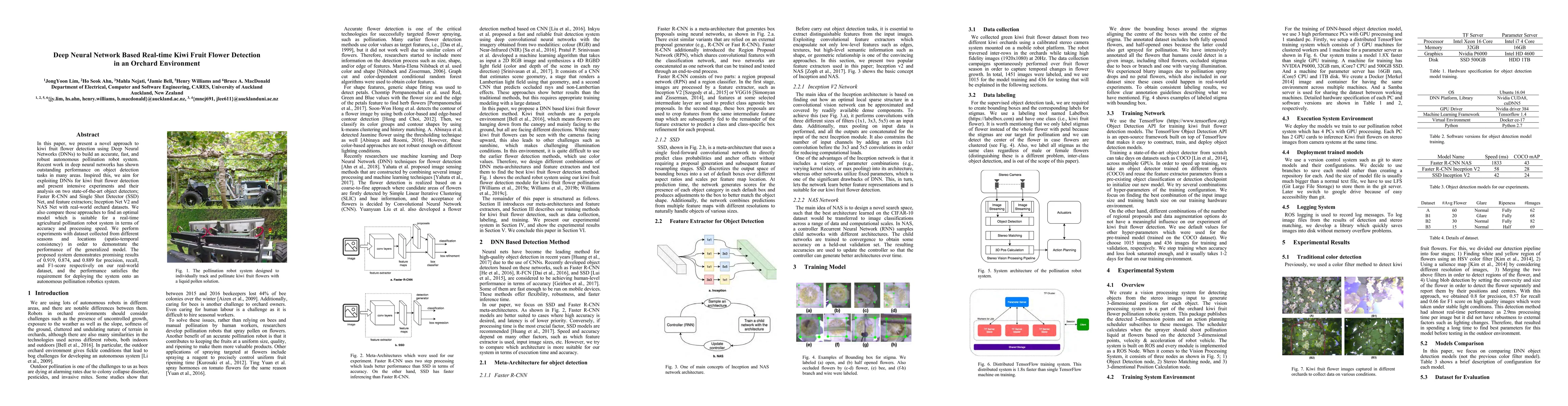 This research introduces a deep neural network-based method for detecting kiwi fruit flowers in orchard environments to support autonomous pollination robots. The study evaluates several state-of-the-art object detection models, including Faster R-CNN, SSD Net, Inception Net V2, and NAS Net, to identify the most effective approach for real-time application. The results indicate promising accuracy metrics suitable for deployment in an agricultural pollination robot system.