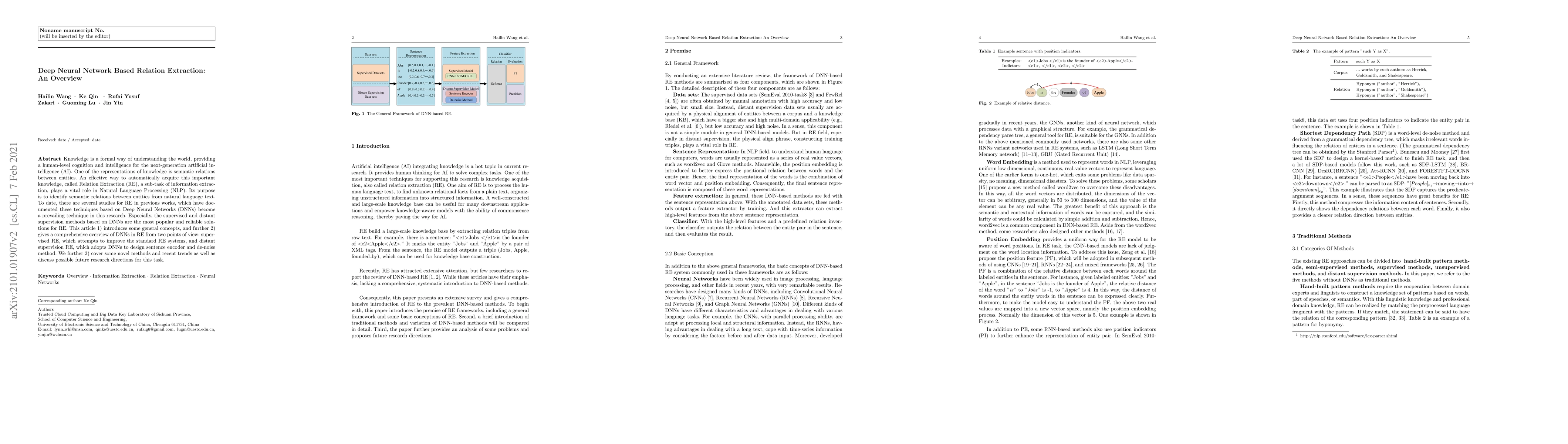 Knowledge is a formal way of understanding the world, providing a human-level cognition and intelligence for the next-generation artificial intelligence (AI). One of the representations of knowledge is semantic relations between entities. An effective way to automatically acquire this important knowledge, called Relation Extraction (RE), a sub-task of information extraction, plays a vital role in Natural Language Processing (NLP). Its purpose is to identify semantic relations between entities from natural language text. To date, there are several studies for RE in previous works, which have documented these techniques based on Deep Neural Networks (DNNs) become a prevailing technique in this research. Especially, the supervised and distant supervision methods based on DNNs are the most popular and reliable solutions for RE. This article 1) introduces some general concepts, and further 2) gives a comprehensive overview of DNNs in RE from two points of view: supervised RE, which attempts to improve the standard RE systems, and distant supervision RE, which adopts DNNs to design sentence encoder and de-noise method. We further 3) cover some novel methods and recent trends as well as discuss possible future research directions for this task.