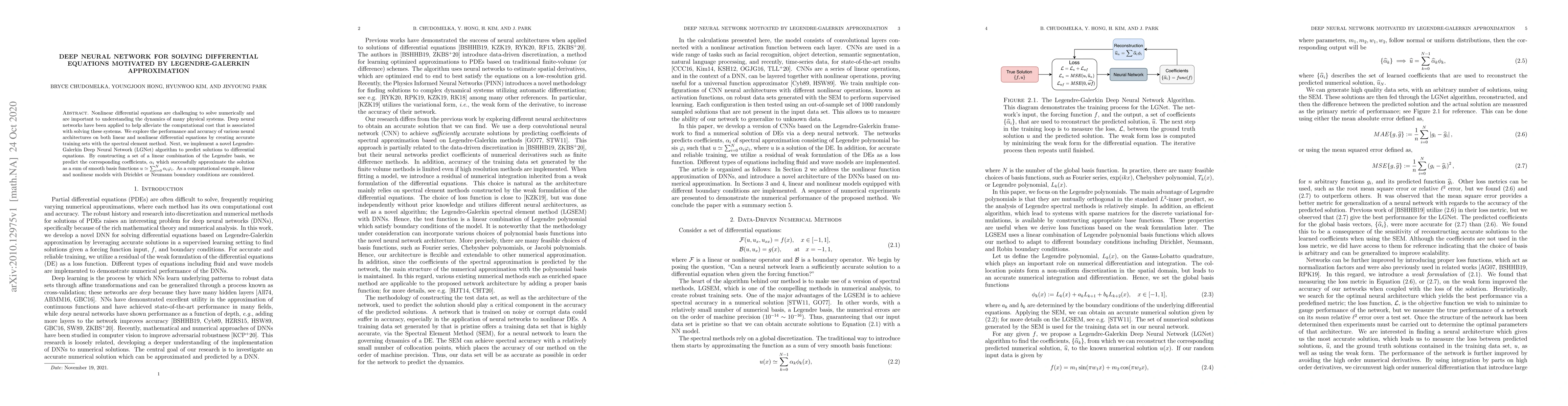 This paper explores deep neural networks for solving nonlinear differential equations, leveraging the Legendre-Galerkin approximation to create accurate training sets. The proposed Legendre-Galerkin Deep Neural Network (LGNet) algorithm predicts solution coefficients using a linear combination of Legendre basis functions, demonstrating effectiveness for both linear and nonlinear models with various boundary conditions.