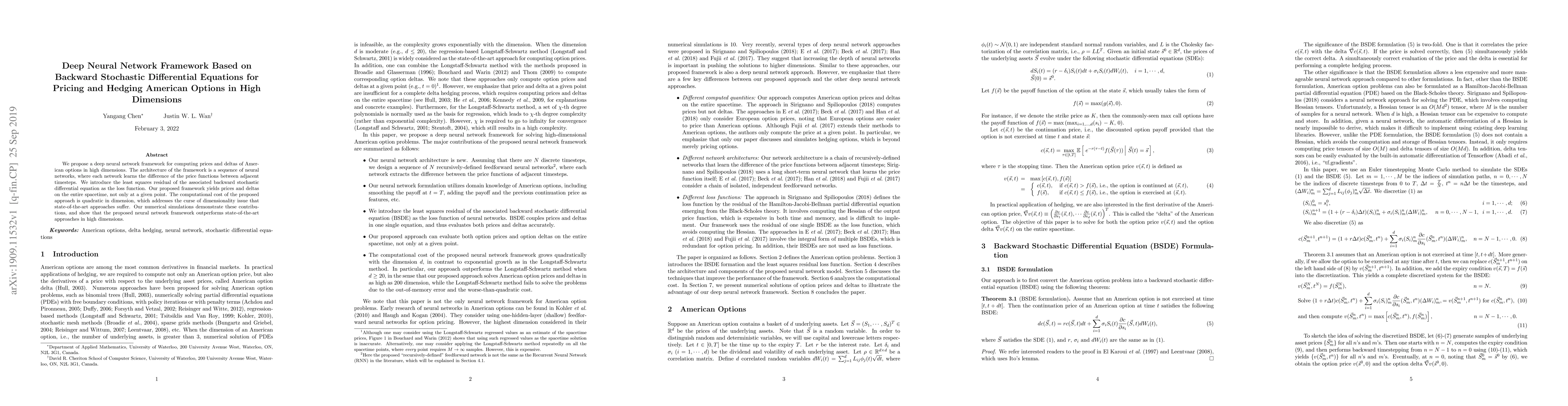 We propose a deep neural network framework for computing prices and deltas of American options in high dimensions. The architecture of the framework is a sequence of neural networks, where each network learns the difference of the price functions between adjacent timesteps. We introduce the least squares residual of the associated backward stochastic differential equation as the loss function. Our proposed framework yields prices and deltas on the entire spacetime, not only at a given point. The computational cost of the proposed approach is quadratic in dimension, which addresses the curse of dimensionality issue that state-of-the-art approaches suffer. Our numerical simulations demonstrate these contributions, and show that the proposed neural network framework outperforms state-of-the-art approaches in high dimensions.