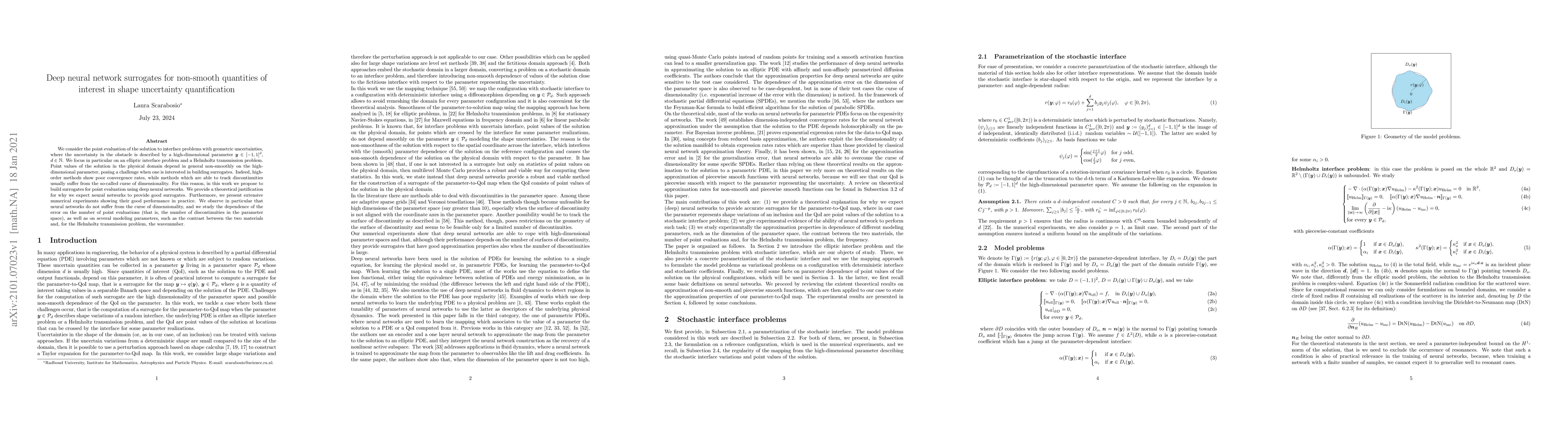 This paper proposes using deep neural networks to build surrogates for point evaluations of solutions in geometric uncertainty problems, which show better performance than traditional methods in tracking discontinuities.