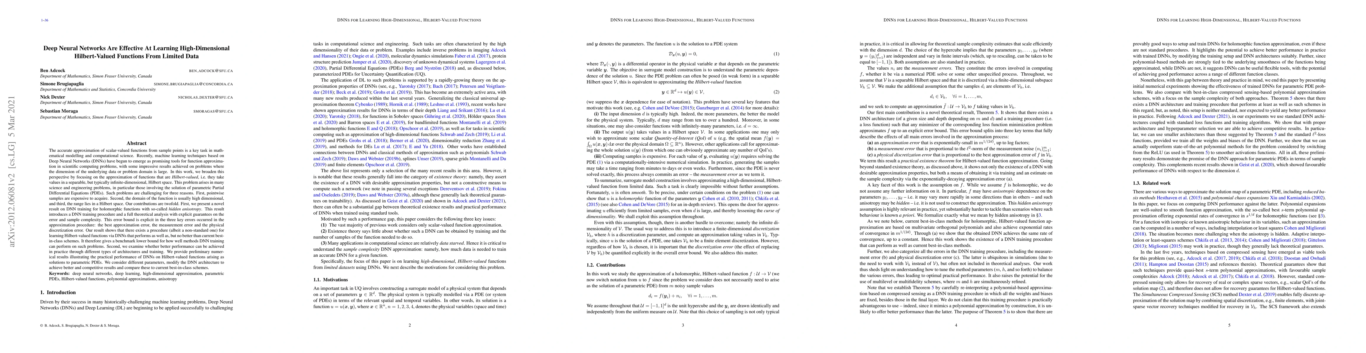 This paper investigates the effectiveness of Deep Neural Networks (DNNs) in approximating high-dimensional Hilbert-valued functions from limited data, particularly in the context of solving parametric Partial Differential Equations (PDEs). It presents a novel DNN training procedure with theoretical analysis and benchmarks DNN performance against current best-in-class schemes, while also exploring practical improvements through different DNN architectures.