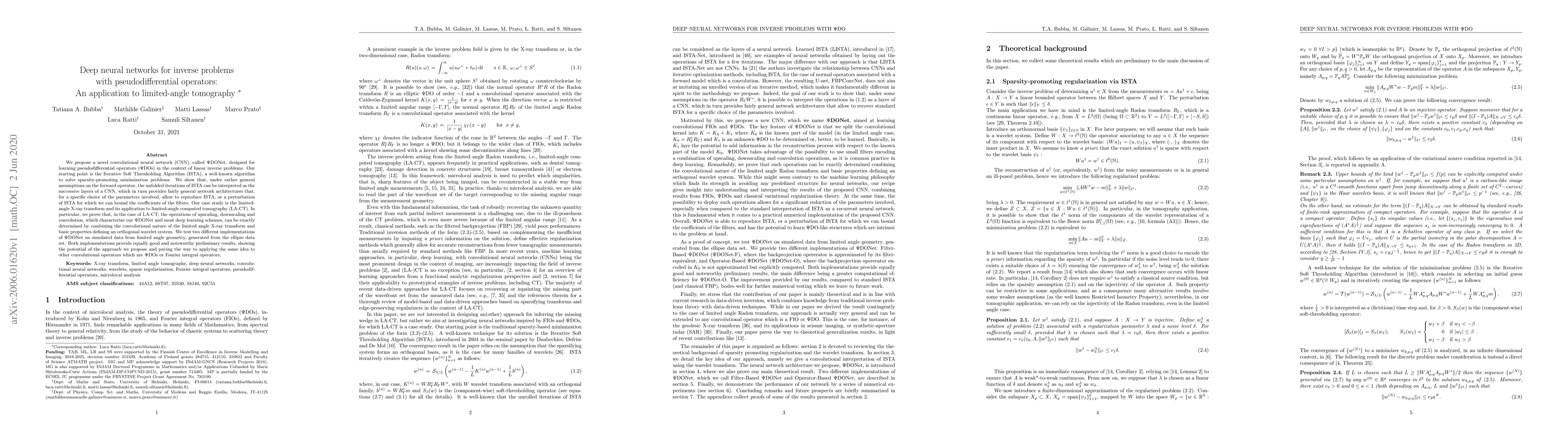This paper introduces $\Psi$DONet, a convolutional neural network designed to learn pseudodifferential operators for solving linear inverse problems, specifically applied to limited-angle tomography. The network is derived from the Iterative Soft Thresholding Algorithm and demonstrates promising preliminary results for reconstructing images from limited-angle X-ray data.