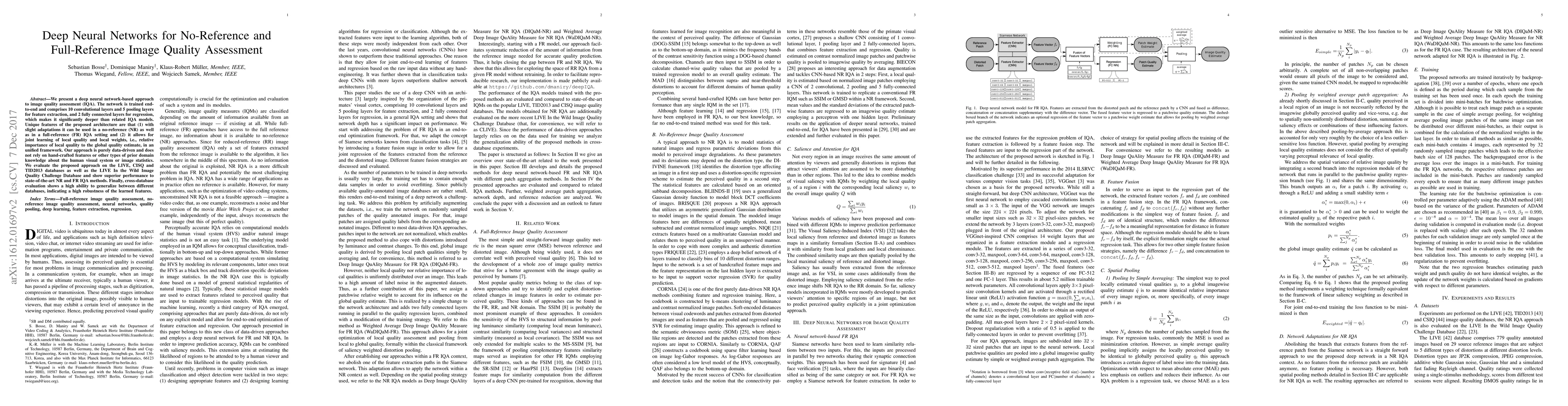 This paper presents a deep neural network for image quality assessment that can function in both no-reference and full-reference settings, achieving superior performance compared to state-of-the-art methods. The network's deep architecture allows for joint learning of local quality and its relative importance, demonstrating high generalization and robustness across different datasets.
